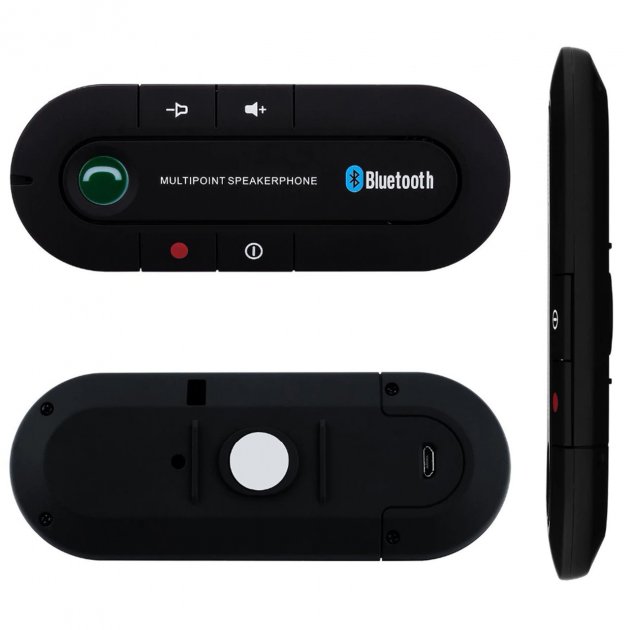 За допомогою металевого тримача та магніту гучномовець легко фіксується на сонцезахисному щитку салону або в отворі подачі повітря. Виходячи із салону, вимикати Bluetooth-спікерфон не обов'язково. Він самостійно відключиться через 10 хвилин. Оснащений високоякісним динаміком та чутливим мікрофоном, який і забезпечує гучний зв'язок. Простим натисканням на кнопку гучний зв'язок перемикається на приватний смартфон. Також є кнопка, яка здатна вести запис вашої розмови та можливість голосового набору.